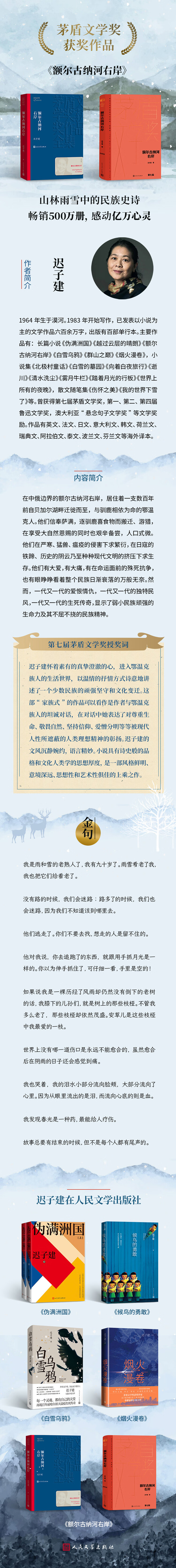 额尔古纳河右岸 迟子建 茅盾文学奖获奖作品全集 第七届茅奖 人民文学出版社 小说